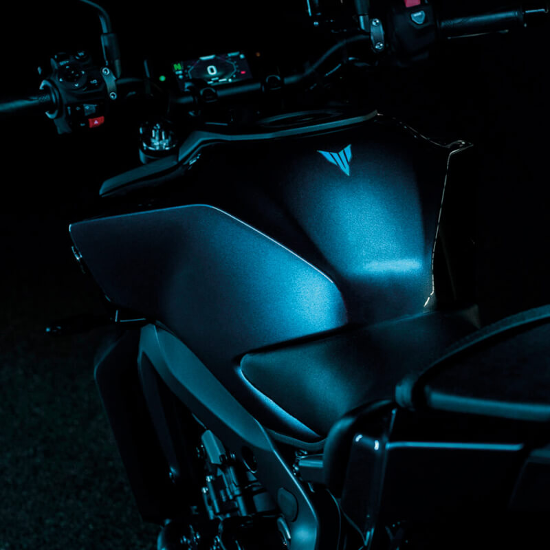 El vanguardista estilo Hyper Naked responde al concepto purista de «menos es más», llevando la MT-09 al siguiente nivel con una carrocería agresiva y minimalista. El nuevo faro LED bifuncional ahora está dentro de una cubierta, creando una relación más compacta y unificada con el depósito de combustible de nuevo diseño, que permite una posición de pilotaje más activa y ligeramente inclinada hacia adelante, manteniendo al mismo tiempo la estética de precisión y vanguardia que caracteriza a la gama MT.