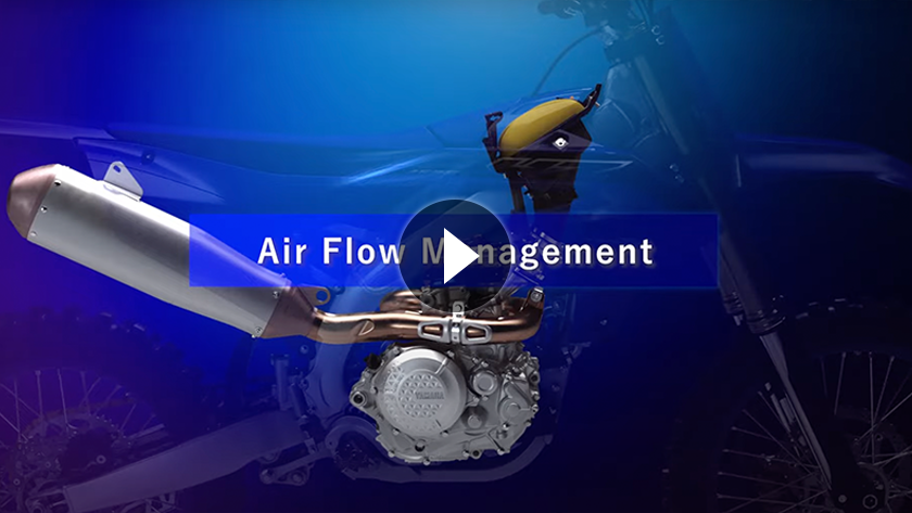 Gracias a la admisión adelantada, que utiliza un conducto en la parte frontal de la moto para dirigir aire fresco al motor, el aire no se calienta por el motor y se mantiene más frío. Al mismo tiempo, es menos probable que el polvo levantado por la propia moto entre en el conducto. Este diseño único ahora se utiliza en todos los modelos Yamaha YZ y WR de 4 tiempos.